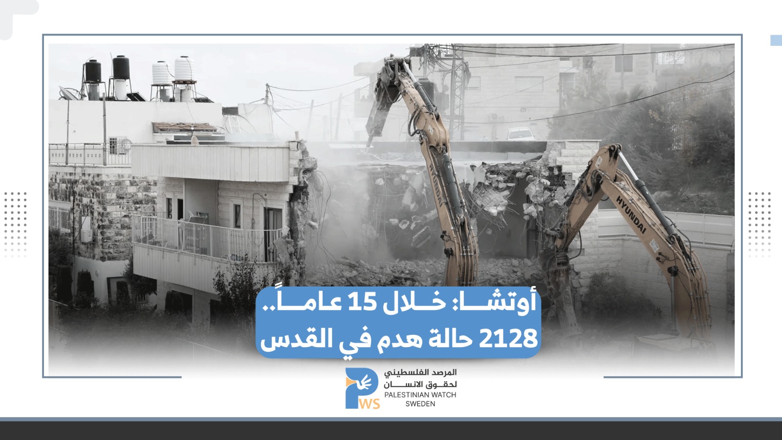 أوتشا: سلطات الاحتلال نفذت 2128 عملية هدم في القدس خلال 15 عاماً