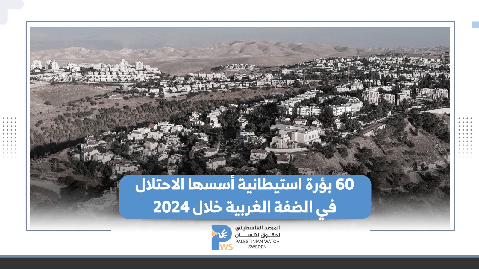 أفادت منظمة إسرائيلية أن عام 2024 شهد تأسيس 60 بؤرة استيطانية جديدة في مناطق الضفة الغربية، وهو ما يعادل نحو خُمس جميع البؤر المقامة منذ عام 1997، والذي بلغ 284 بؤرة استيطانية، بحسب ما ورد في موقع "زمان يسرائيل".